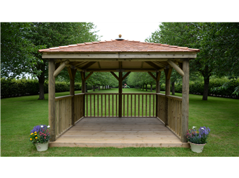 Timber Roofed Gazebos: Our standard timber roofed options provide a robust and aesthetically pleasing structure, perfect for any outdoor setting.